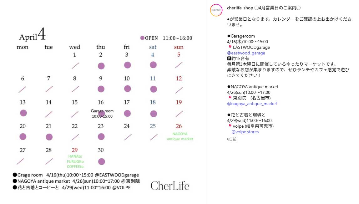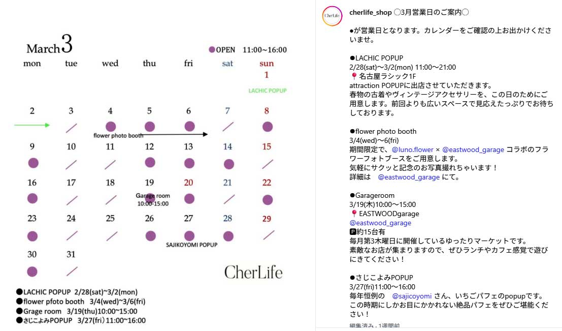 ※出店情報・CherLifeの詳しい情報は |