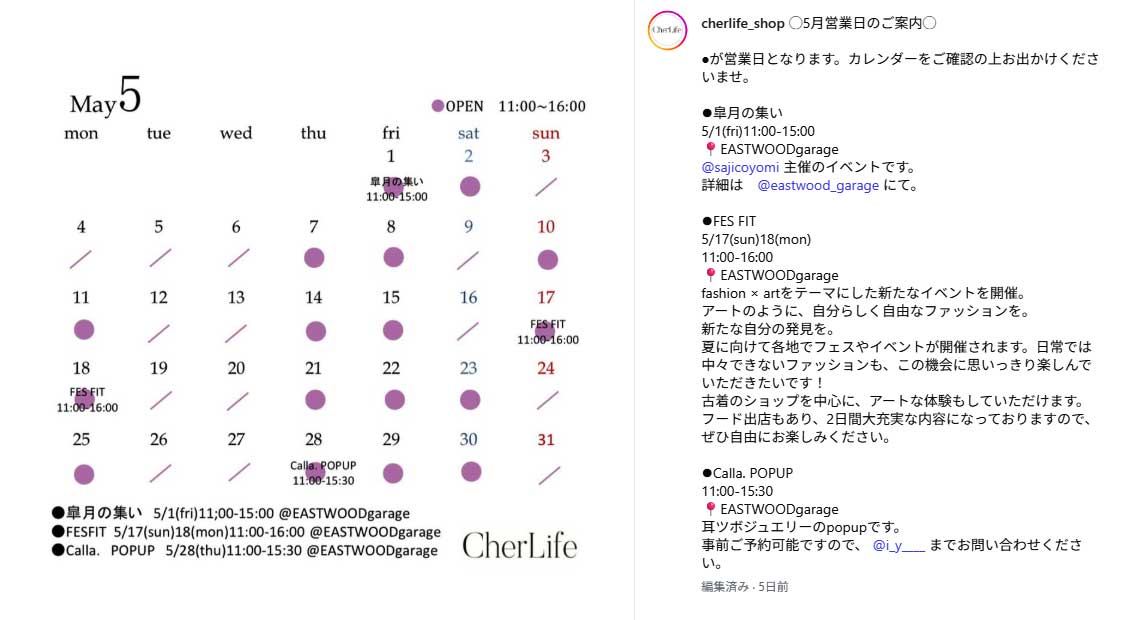 ※出店情報・CherLifeの詳しい情報はこちら